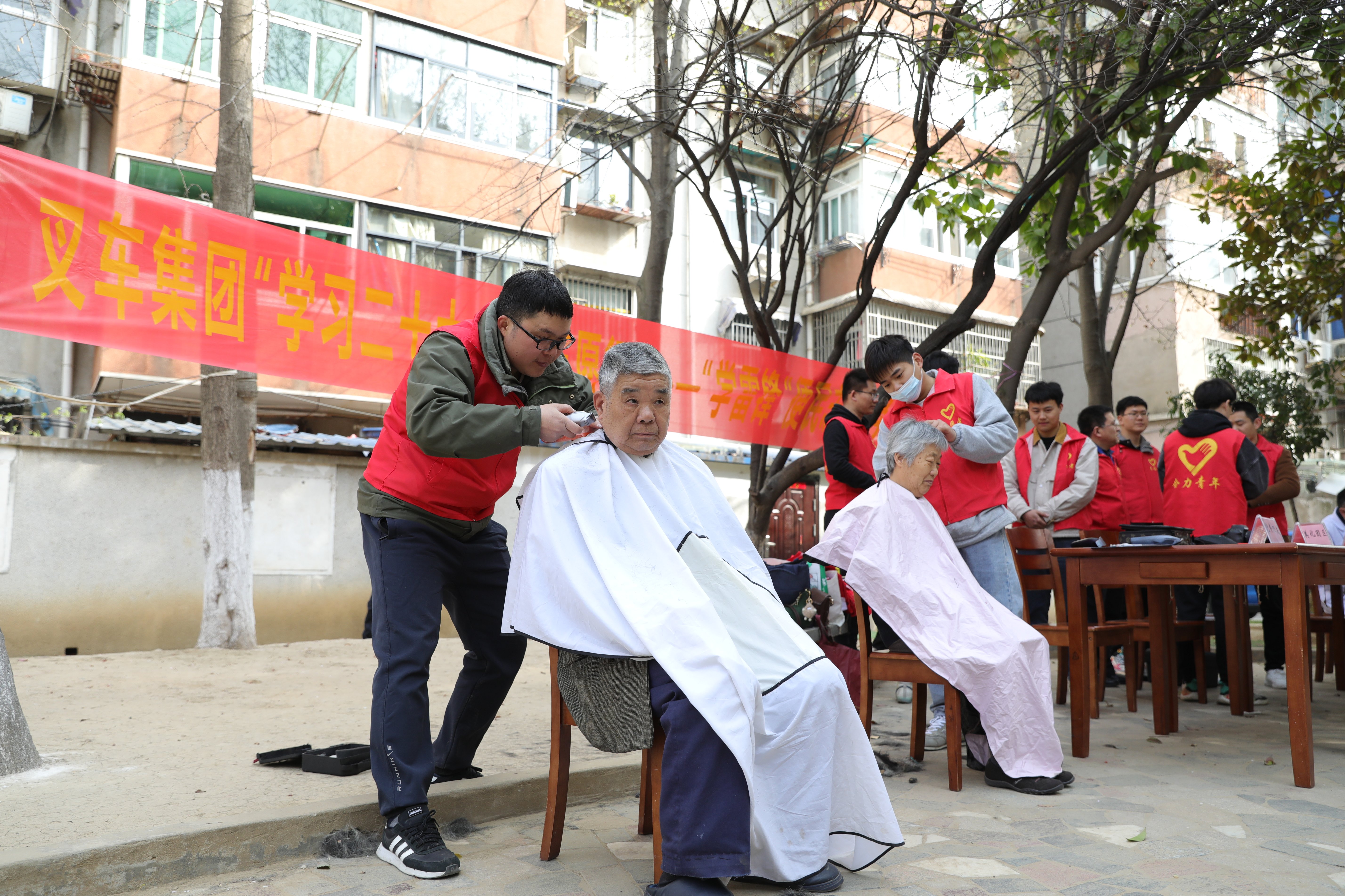 3月12日,合力家園一群身穿合力志愿者紅馬甲的年輕人特別惹人注目,他們或坐在一字?jǐn)[開的服務(wù)咨詢臺前為居民量血壓,或耐心的為前來咨詢法律服務(wù)的居民答疑解惑,或嫻熟的揮動手中的剃刀為居民免費理發(fā),或主動上門為居民維修電器,或穿梭在樓道街巷進(jìn)行義務(wù)清...